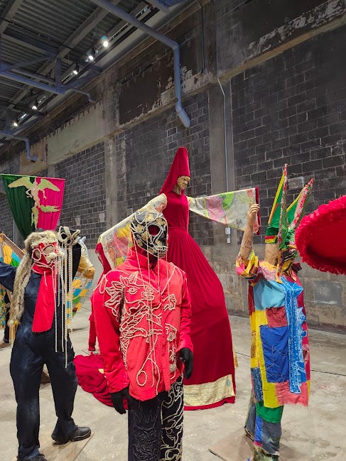 Each summer, the Institute of Contemporary Art, Boston, mounts a large-scale work at its East Boston Watershed location. The exhibit is free, and year in and year out has been worth a visit. This year Hew Locke conjures up the spirit of Caribbean carnival (and so much more) with The Procession. Each of the approximately 140 life-sized figures is rich in visual splendor and metaphorical meaning. I visited the Watershed in combination with a visit to the ICA in the Seaport via a museum pass (available from my library for $10.00; the museum exhibits right now are excellent, plus admission includes a round trip via water taxi to the Watershed). I’ve added a link to the picture below (one of many I took at the exhibit) to a series of videos where Locke and others show and discuss his work. Click on the picture and enjoy The Procession.