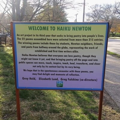 For the third spring in a row, Newton is presenting a set of haiku selected from over 200 entries. I saw the selected entries today outside of the Newton Free Library, and as always, was enchanted by how deep you can go in a mere 17 syllables. This year, I submitted a haiku of my own, and while my poem was not selected, interested folks will eventually be able to see all the submissions in an online anthology. For much more, please click here for the Poetry Newton Website.