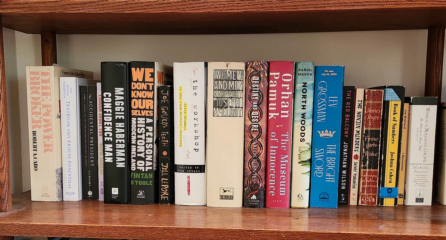 The Power Broker; Robert Caro - I very much enjoyed the first 298 pages of this magisterial biography of Robert Moses, who for better or for worse remade New York City by displacing neighborhoods for highways. Then I ran out of gas and set it aside about a decade ago. Every time I consider bumping it from the shelf, I pick it up and read a paragraph or two and remember how good this book is. The bookmark is still in place so I can pick up where I left off, helpful for a book that runs 1,162 pages.